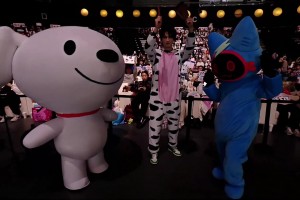 BLG、JDG两队吉祥物与敲钟牛激情互动