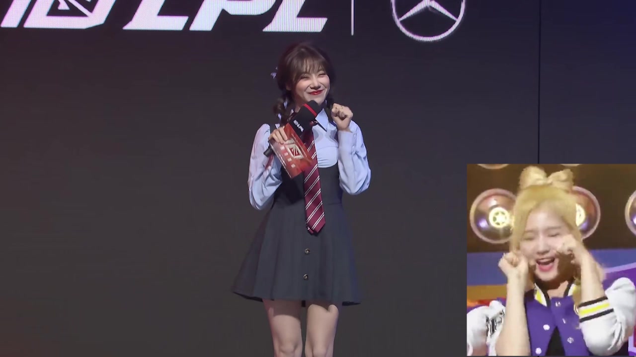 >小钰蓝色制服短裙+半膝袜可爱捏,出场动作卡哇伊~