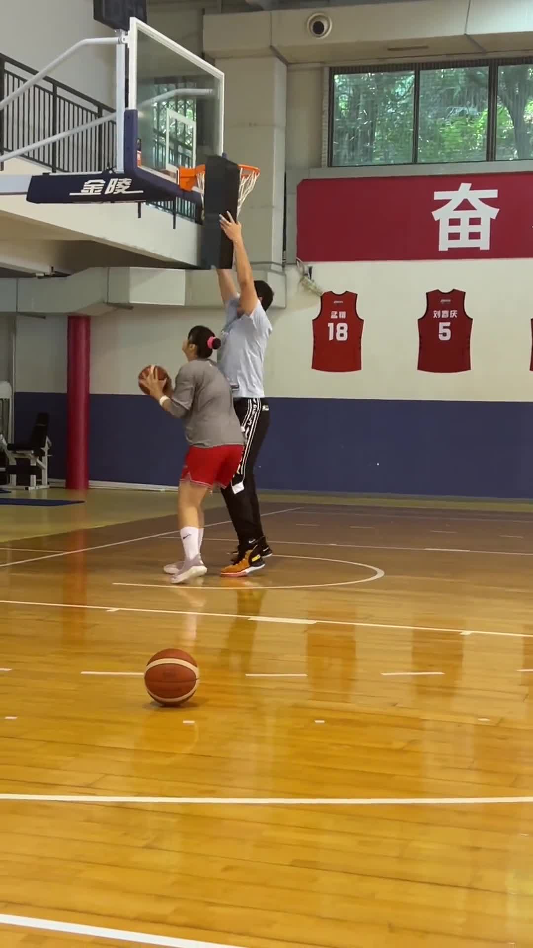 >打球还是骂俏?🤣李月汝这是让男友赵义明模拟单打姚明呢