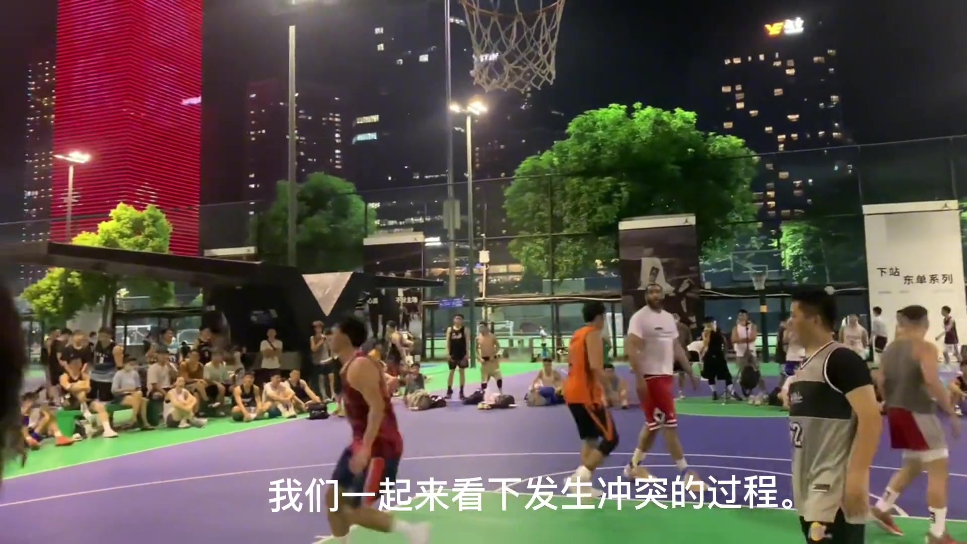 >另一视角;广州天河篮球场黑人小哥不爽对方动作怒推灰衣男
