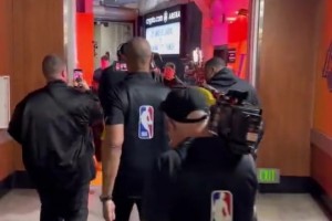[赛前花絮] 气氛到这了 今天见证?詹姆斯入场时身边围了众多记者与摄像
