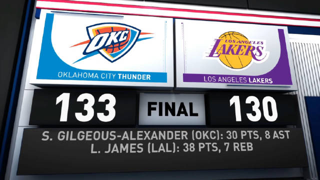 [微博全场集锦] 🏀詹姆斯38+7登顶历史得分王 亚历山大30+8 湖人不敌雷霆