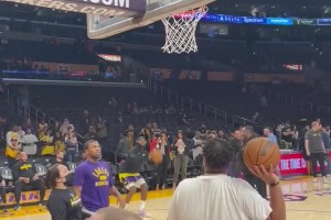 [赛前花絮] 詹姆斯热身三分连中 投到一半竟玩起天勾三分😲