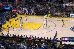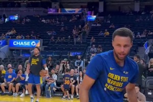 [赛前花絮] “金州拉文”起飞!库里赛前热身秀360度暴力炸筐😏