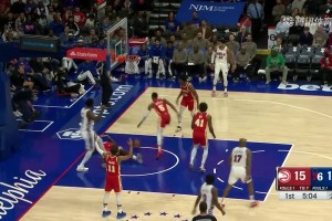 [恩比德进攻犯规] 想进个球很难!恩比德顶翻卡佩拉被吹进攻犯规!第一节0进球!