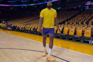 [詹姆斯赛前] 詹杜对决即将到来!詹姆斯早早来到球场训练!自抛空接双手爆扣!