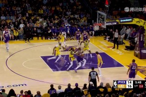 [腾讯原声集锦] 太阳末节崩盘全队11分!詹姆斯打满第四节献关键球 湖人逆转取首胜
