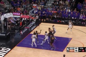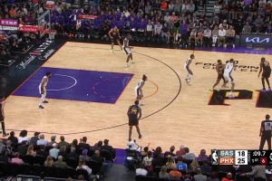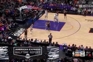 [文班亚马隔扣] 文班亚马一步过掉杜兰特炸裂隔扣尤班克斯!扣完后阿杜愣在原地!