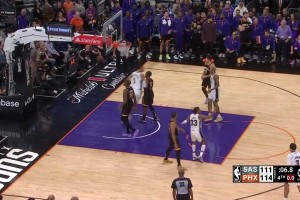 [杜兰特违例] 又吃了大脚的亏!😂杜兰特运球后撤,结果脚踩中线回场违例