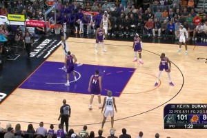 [杜兰特三分] 这硬解能力!杜兰特外线无视防守直接干拔三分穿针