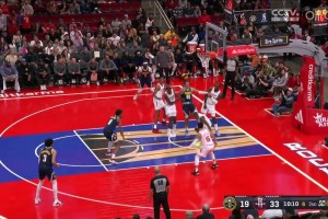 [约基奇2+1] 小伙子真的活力十足!伊森冲击掘金内线上篮打进,随后比出“矮”的手势嘲讽