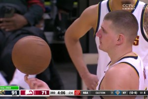 [约基奇转球] 约老师暂停期间秀了个小花活:手指转球!你别说转的真不赖!😂