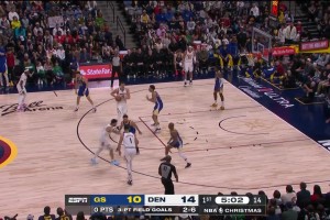 [约基奇失误] 约老师:早想跟你联手了!约基奇不看人传球 直接传给场边的库里