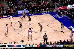 [文班亚马暴扣] 布兰纳姆突破抛投不中,自投自抢助攻文班篮下暴扣得手