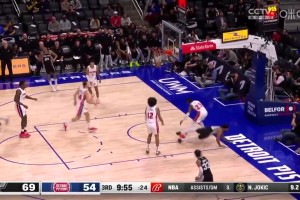 [文班亚马穿裆妙传] 卧槽,你还有这手!文班亚马击地穿裆博扬,助攻队友轻松上篮