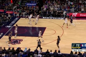 [恩比德1v3] 在内线无敌了!恩比德篮下面对三人包夹,1v3不看框勾手打进!