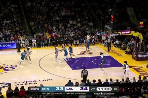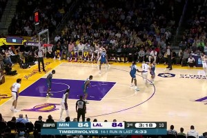 [浓眉暴扣] 拉塞尔击地妙传撕开森林狼防线 助攻篮下的浓眉轻松暴扣