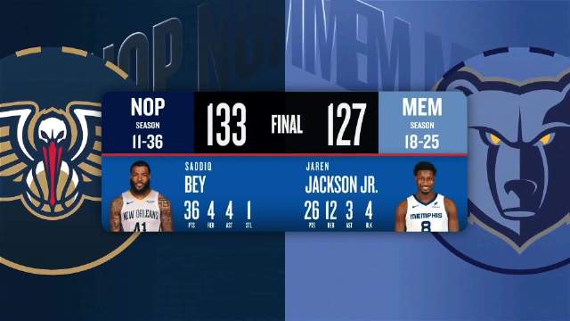 [腾讯全场集锦]🏀鹈鹕3人20+力克灰熊结束3连败!贝36分 墨菲32分 JJJ26+12