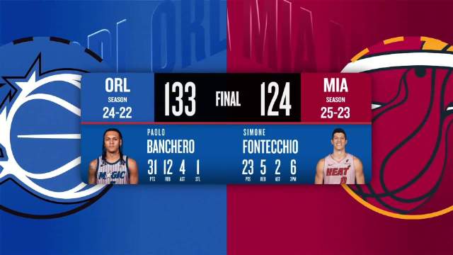 [腾讯全场集锦]🏀魔术3人20+四杀热火止4连败 班凯罗31+11 阿德巴约21+12+7