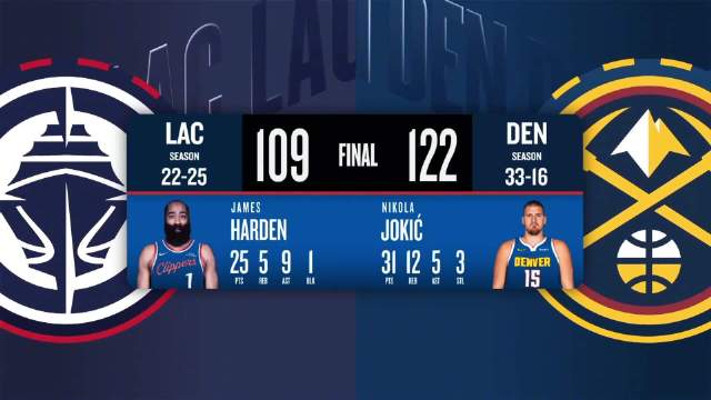[微博全场集锦]🏀掘金力克快船 约基奇复出31+12+5 哈登25+5+9 小卡21+6