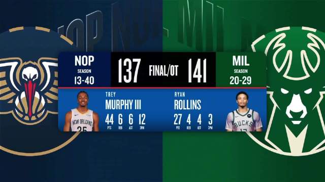 [腾讯全场集锦]🏀雄鹿7人上双加时送鹈鹕3连败 墨菲12记三分创新高&空砍44分