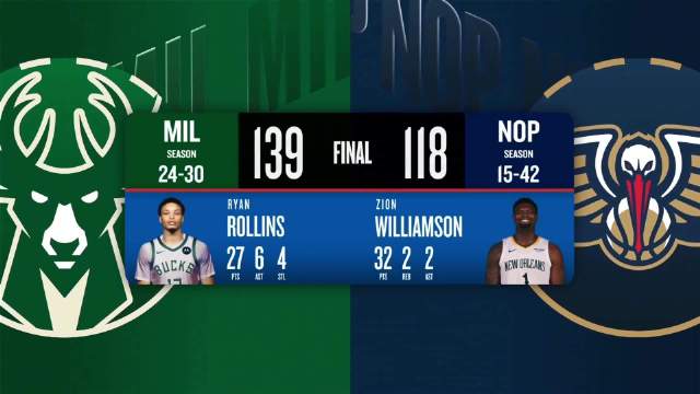 [腾讯全场集锦]🏀雄鹿3人20+轻取鹈鹕迎3连胜 托马斯27分 罗林斯27+6 锡安32分