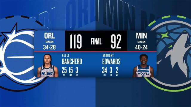 [微博全场集锦]🏀魔术终结森林狼5连胜 班凯罗25+15 贝恩30分 爱德华兹34分