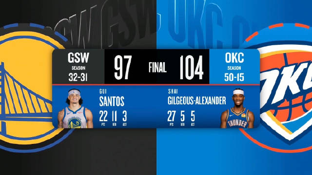 [腾讯全场集锦]🏀雷霆赛季横扫勇士!SGA27+5+5 桑托斯22+11 波杰姆17+6+6