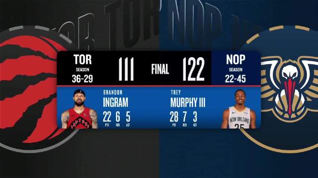 [微博全场集锦]🏀鹈鹕力克猛龙 墨菲28+7 穆雷27+5+6 英格拉姆22+6