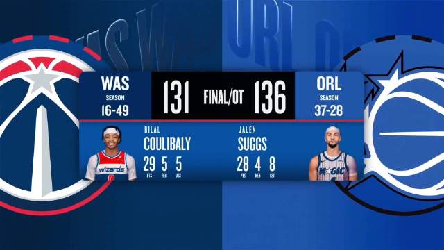 [腾讯全场集锦]🏀魔术3人20+加时送奇才10连败 萨格斯28+8 库利巴利29+5+5