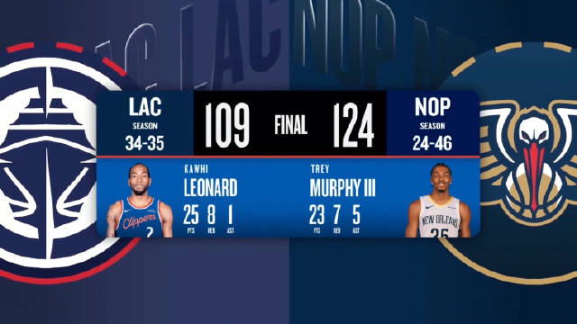 [腾讯全场集锦]🏀首发合砍86分鹈鹕18分逆转送快船三连败!墨菲23+7 小卡25+8