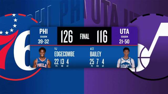 [微博全场集锦]🏀76人3人20+擒爵士 格莱姆斯25分 埃奇库姆22+13 贝利25+7+5帽