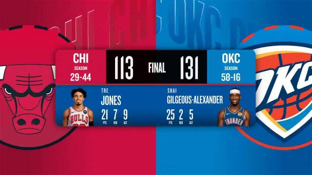 [微博全场集锦]🏀下半场一波流!雷霆逆转公牛 SGA25分&三分10中0 吉迪11中1