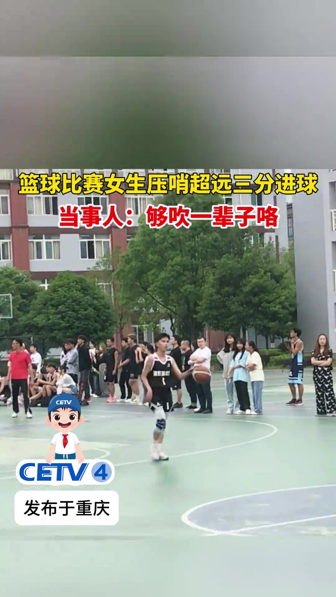 >篮球比赛女生压哨超远三分进球,当事人:够吹一辈子咯...