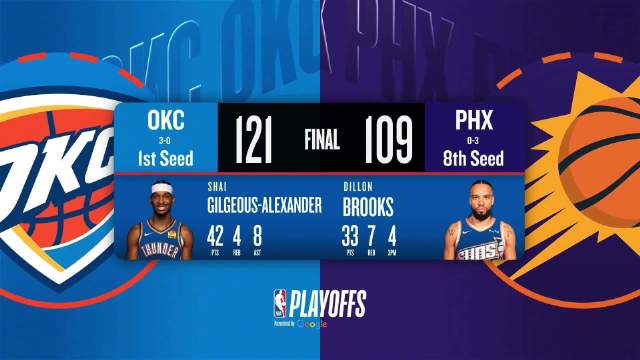 [腾讯全场集锦]🏀雷霆3-0太阳夺赛点!亚历山大42+8 狄龙33+7 布克16中6