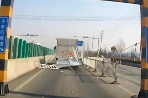 货车没注意限高货厢被撞坏