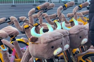 街边共享单车穿上冬天的衣服