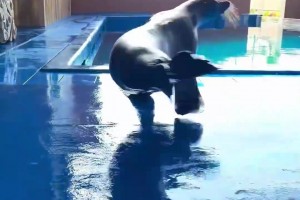 旋转紫色茄子海狮好奇网友:孩子好学