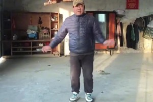 大爷头顶四只鸡跳舞小鸡一动不动