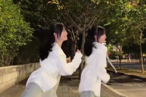 俩女生路边跳舞动作神同步一比一复刻