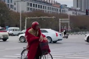 亳州骤冷大爷披铺盖出门懂保暖