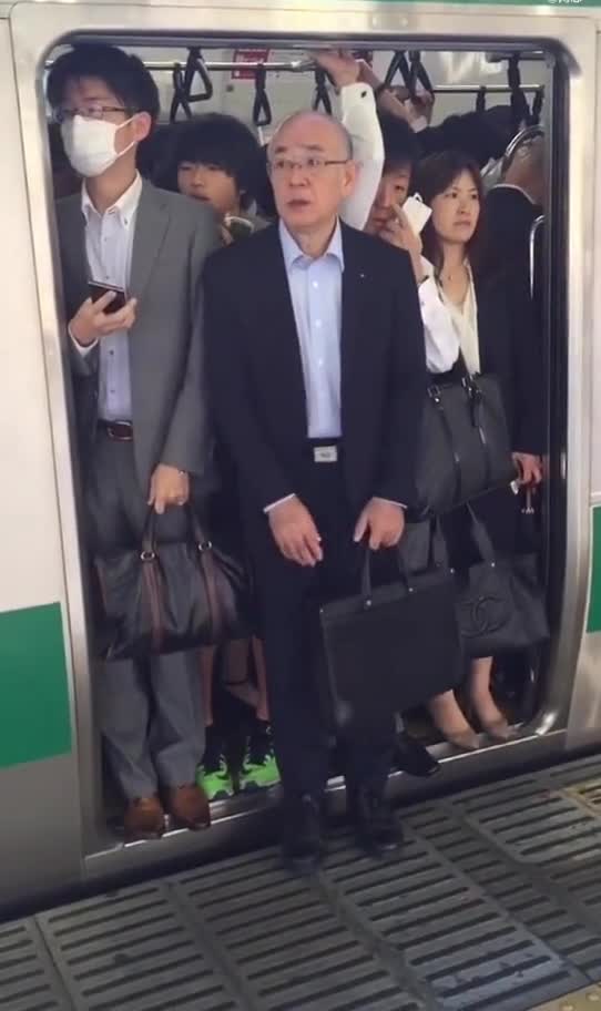 日本高峰期的地铁 是实在挤不上去了