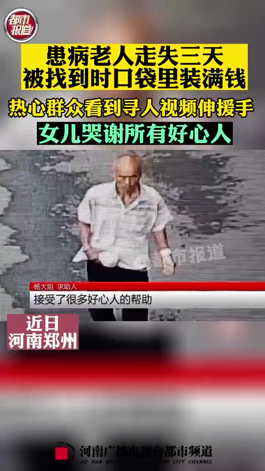 >老人走失3天被找到时口袋塞满了钱,女儿哭谢所有好心人