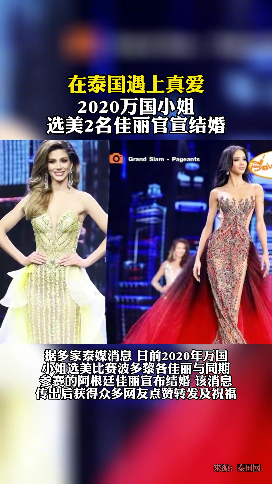 >2020万国小姐选美两佳丽宣布结婚