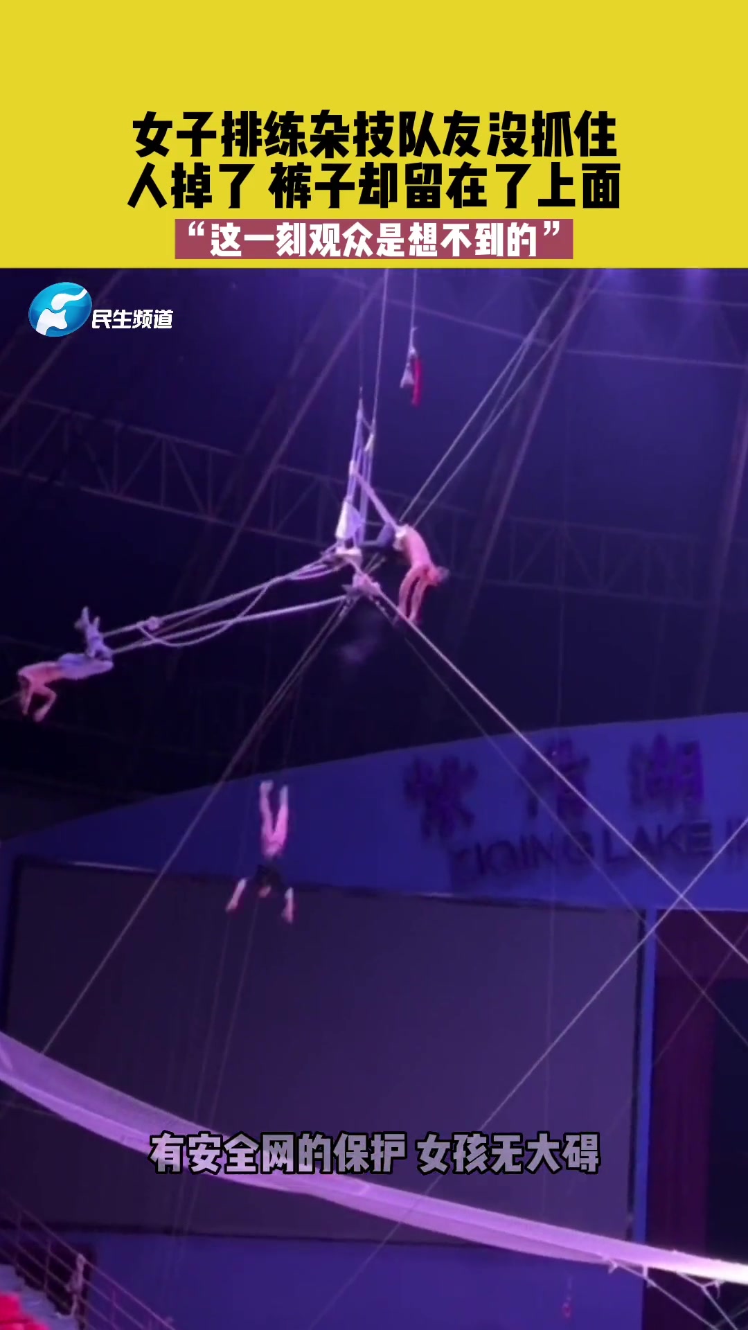 >幸亏穿了保险裤!😂女子杂技演员训练失误,裤子被队友扯掉