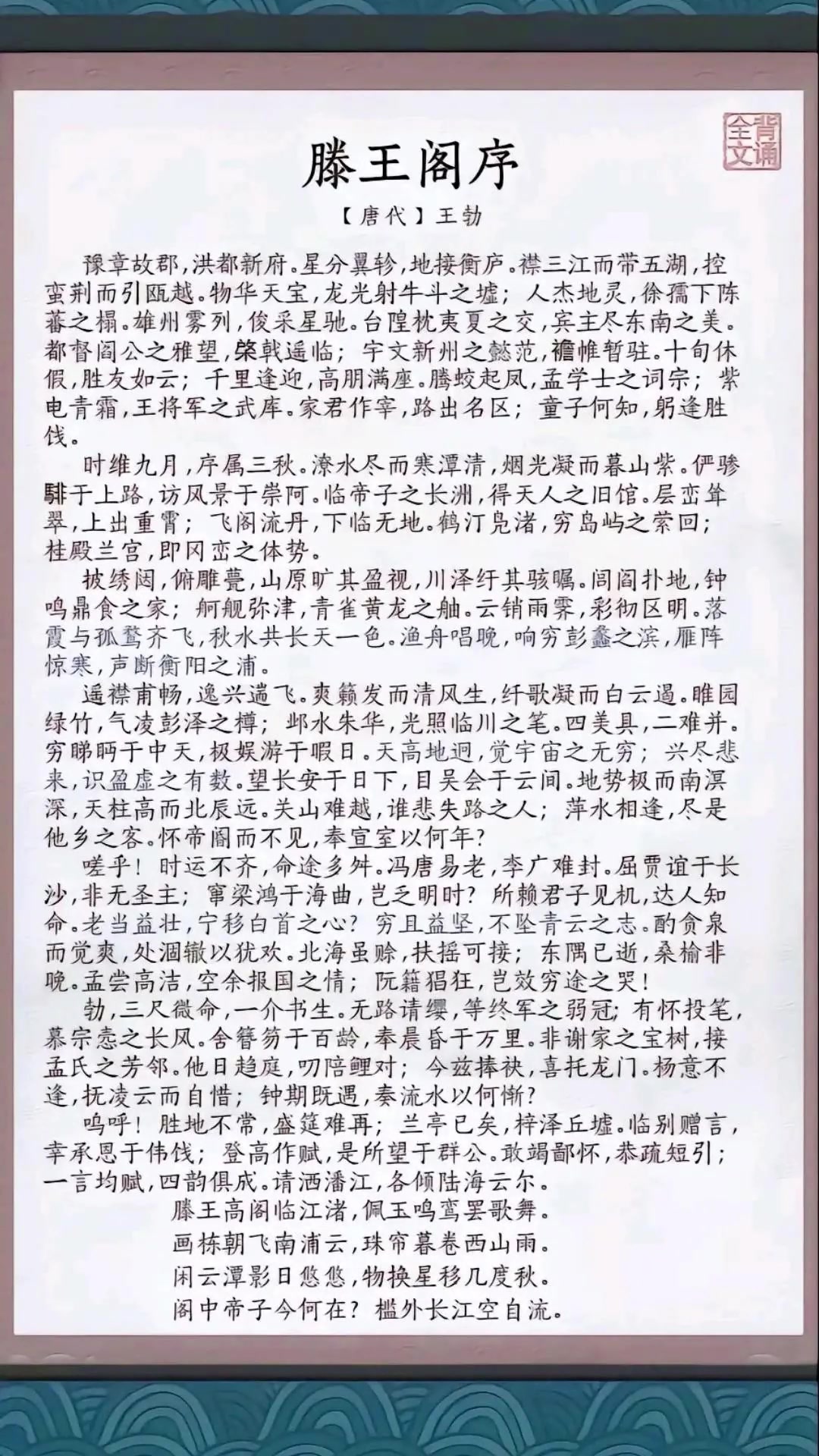 请背诵全文!滕王阁序-千古第一骈文