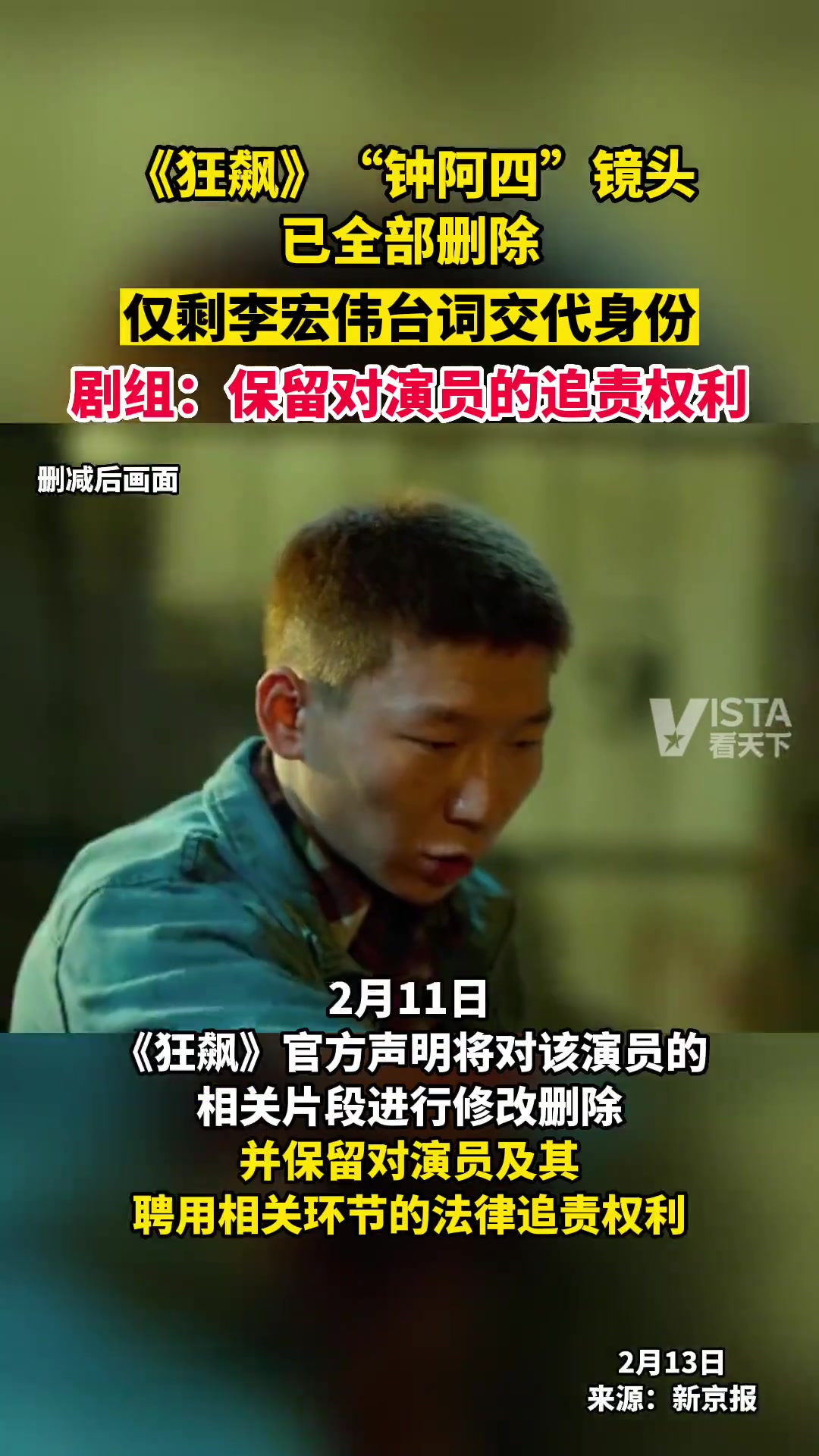 >《狂飙》中钟阿四镜头已全被删除,仅剩李宏伟台词交代身份