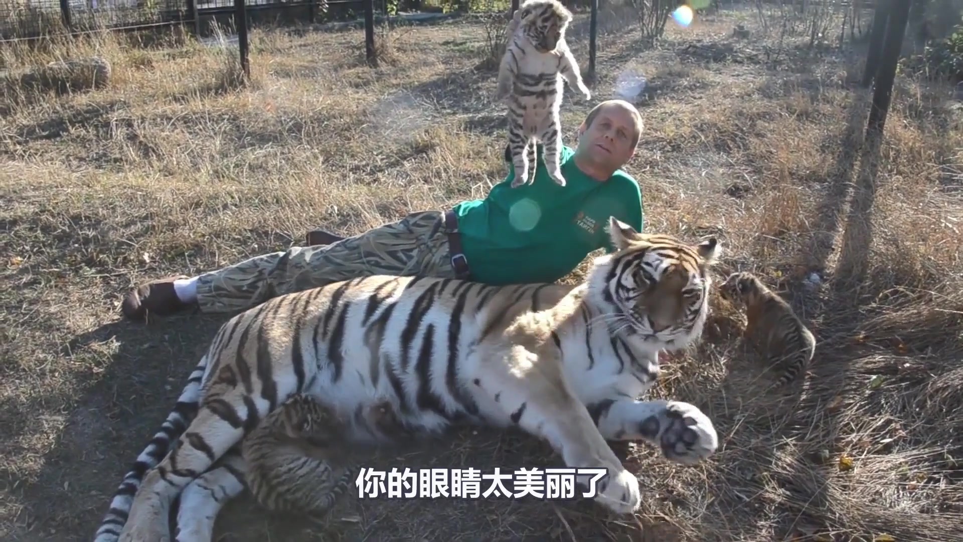 >牛啊!国外大叔抱走刚出生的小老虎,母老虎的眼神太凶了!