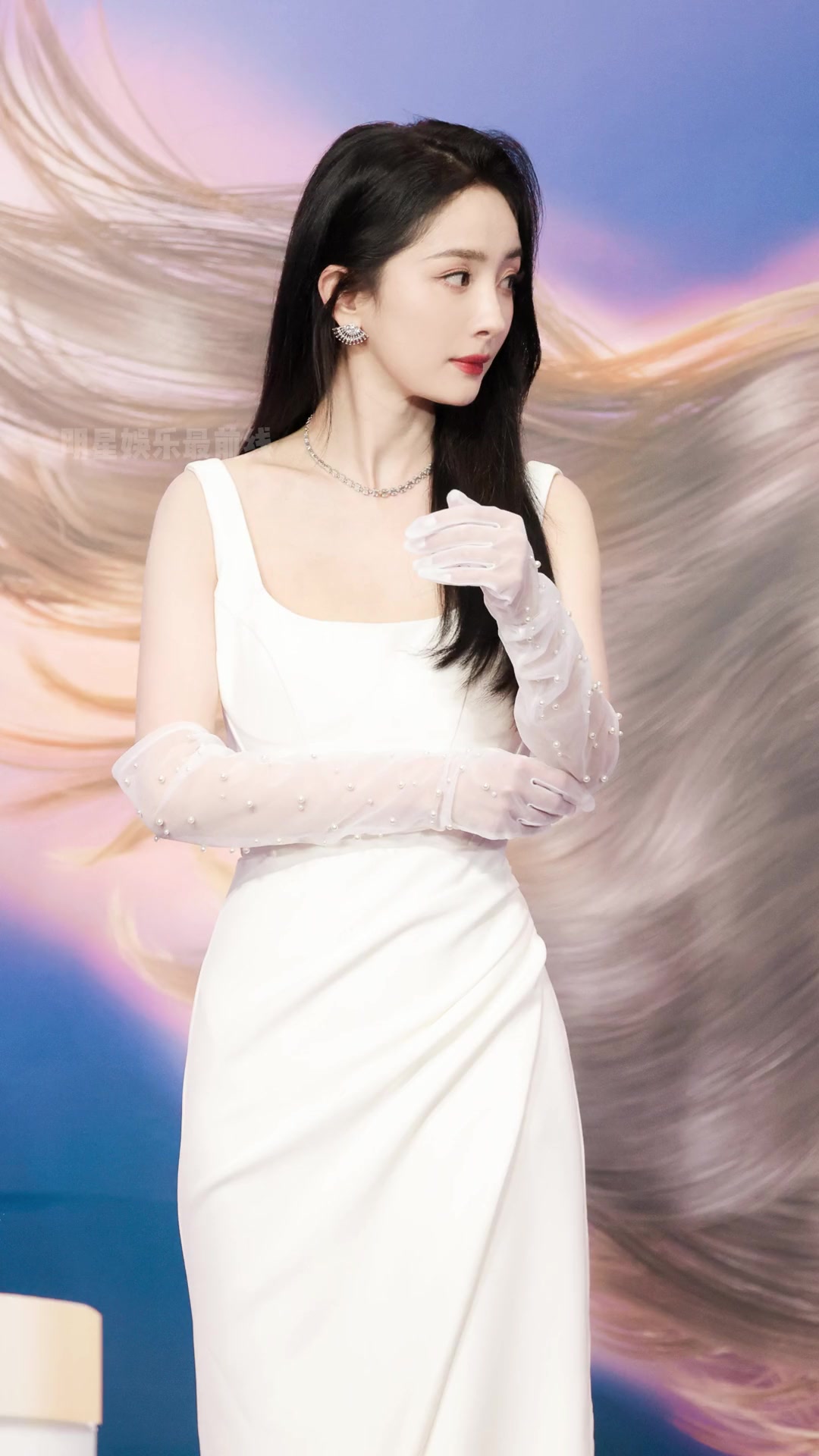 >这气质👍!杨幂一袭白色吊带开叉长裙现身某活动