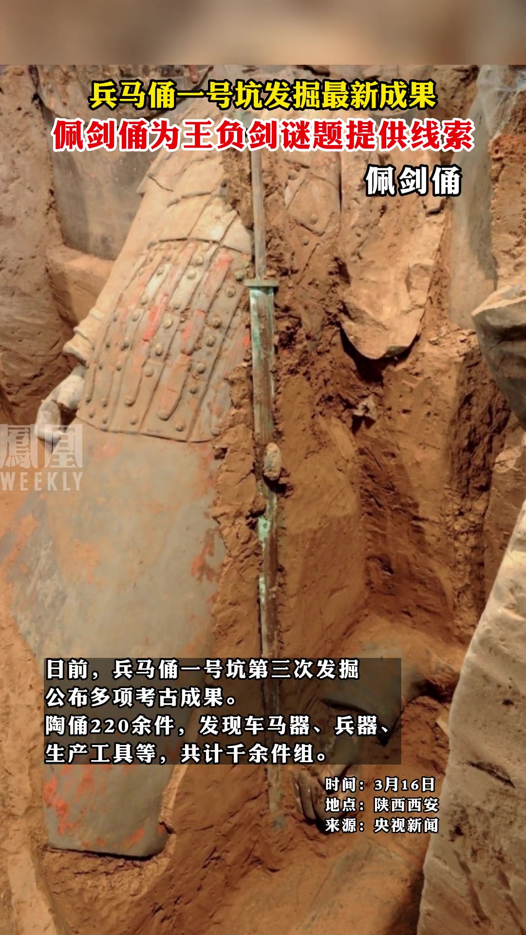>兵马俑一号坑发掘最新成果 佩剑俑为王负剑谜题提供线索!